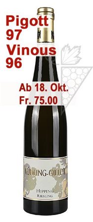 Zur Lage: Der Hipping wurde um 1550 erstmals unter dem Namen „Hupbuhl“ urkundlich erwähnt. Es wird angenommen, dass dort einst Ziegen gehalten wurden, da Hippe mundartlich Ziege und Buhl Hügel bedeutet. Wie ein Parabolspiegel vereinen sich unsere beiden Parzellen im höchsten Punkt des Hipping und erinnern mit ihrem Nord- Ost- und Süd-Westhang an ein kleines, natürliches Amphitheater. Als eines der weltweit einzigartigsten Terroirs verfügt der Hipping über ein spezielles Mikroklima: Gelegen auf 80-170 Metern mit bis zu 60% Hangneigung genießt er uneingeschränkte Sonneneinstrahlung. Seine rund 280 Mio. Jahre alten kargen Urgesteinsböden speichern die Wärme des Tages, die kühlen Nachtwinde des Seitentals erhalten die Säuren. Die Trauben werden streng selektioniert von Hand gelesen, der Most spontan vergoren und im Stückfass von 1200 Litern behutsam ausgebaut.